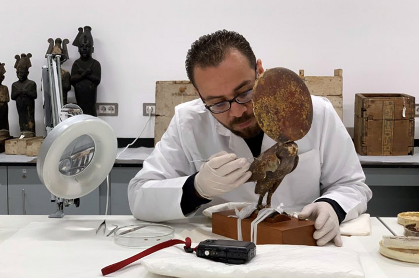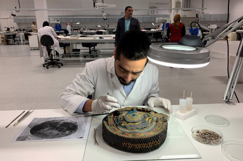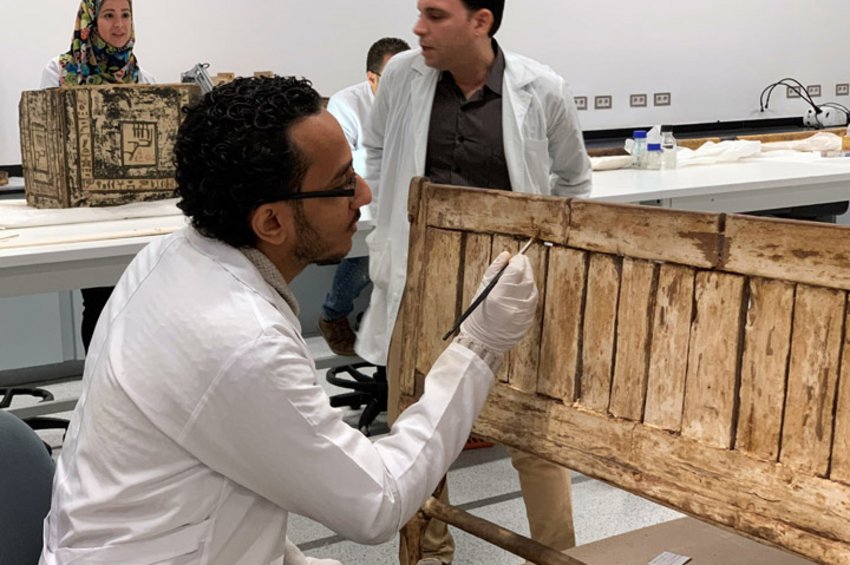 Λίγο αργότερα, καθώς ξεναγούμαστε στο εργαστήριο συντήρησης των κτερισμάτων από τον τάφο του Τουταγχαμών, μία από τις επιστημονικές συνεργάτιδες του δρα Ταουφίκ μας λέει πως όλη η διαδικασία γίνεται με γνώμονα να «παραδοθούν» στο κοινό τα εκθέματα απαλλαγμένα από κάθε τυχόν κακή προηγούμενη παρέμβαση, που μπορεί να έχει αλλοιώσει την αρχική μορφή τους.