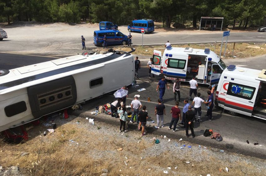 Ένα λεωφορείο, το οποίο μετέφερε Κινέζους τουρίστες στην Καππαδοκία, συγκρούστηκε με δύο αυτοκίνητα που κινούνταν στο αντίθετο ρεύμα κυκλοφορίας και στη συνέχεια ανετράπη.