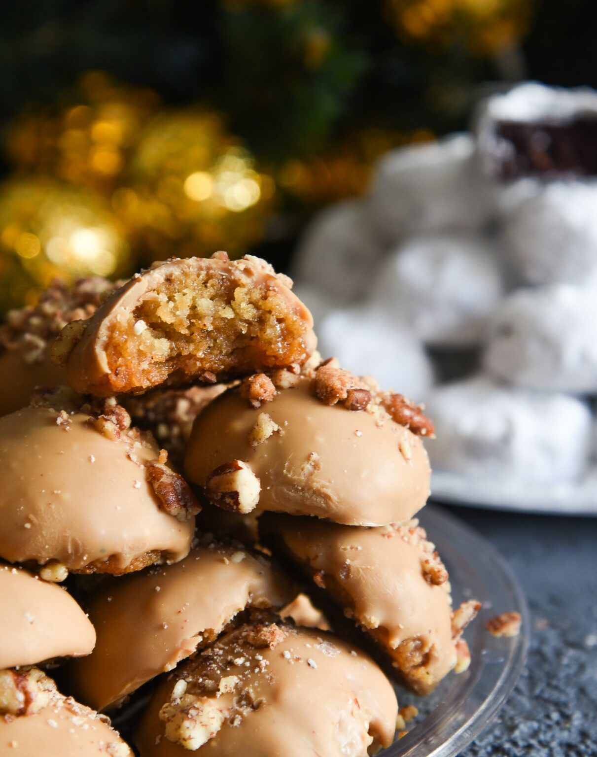 Μελομακάρονα με επικάλυψη λευκή καραμελωμένη σοκολάτα