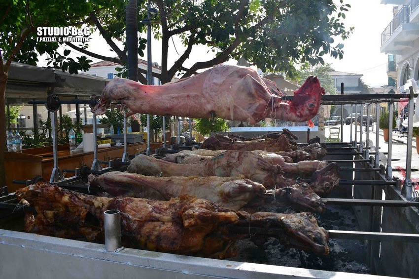 Το έθιμο αλλά και η προσέλκυση πελατών θέλει τα παραδοσιακά καταστήματα εστίασης του Ναυπλίου να ψήνουν τα αρνιά στον δρόμο και τα πεζοδρόμια κυρίως της παλιάς πόλης.