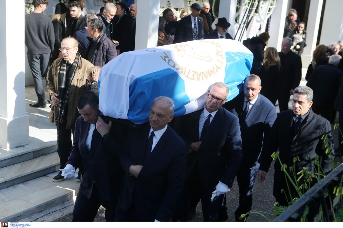 Η σύζυγος του Νάνσυ, τα παιδιά του και τα εγγόνια ήταν στο τελευταίο «αντίο» του κορυφαίου Ολυμπιονίκη του άλματος επί κοντώ, μαζί με πλήθος Ολυμπιονικών όπως ο Στέλιος Μυγιάκης, ο Πέτρος Γαλακτόπουλος, ο Εμμανουήλ Καραλής, ο Δημήτρης Θανόπουλος, ο Γιώργος Χατζηιωαννίδης, ο Γιώργος Τζελίλης, η Βούλα Κοζομπόλη η Εύη Μωραϊτίδου, η Βούλα Ζυγούρη, αλλά και ο θρυλικός Μίμης Στεφανίδης, μέλος της τρομερής ομάδας μπάσκετ του Πανελληνίου τη δεκαετία του 1950. Επίσης παρέστησαν, ο Γενικός Γραμματέας Αθλητισμού Γιώργος Μαυρωτάς, η Πρόεδρος του ΣΕΓΑΣ Σοφία Σακοράφα και ο Πρόεδρος της ΕΦΟΑ Θοδωρής Γκλαβάς.