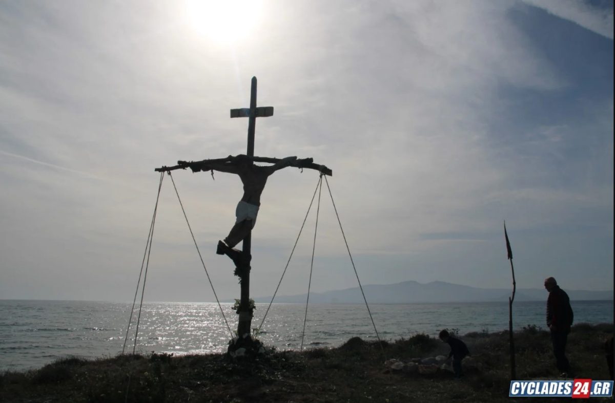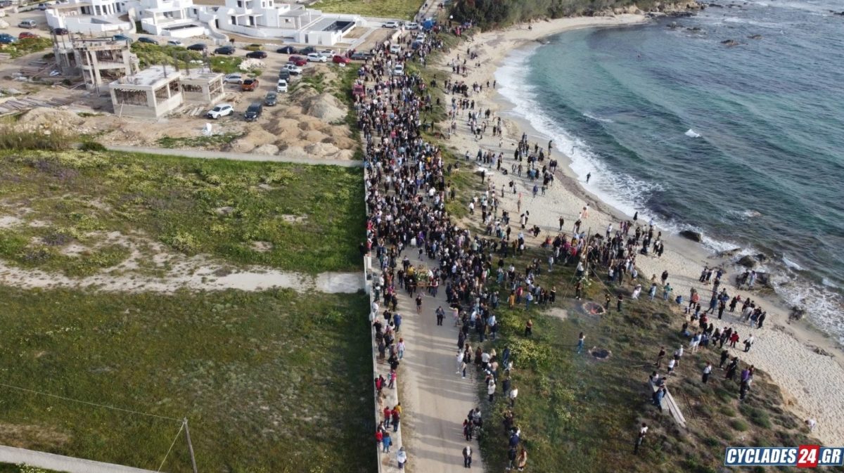 Όπως αναφέρει το cyclades24.gr, την πομπή του Επιταφίου συνόδευσαν ψαλμωδίες πιστών και οι ήχοι από το παραδοσιακό σουβλιάρι.