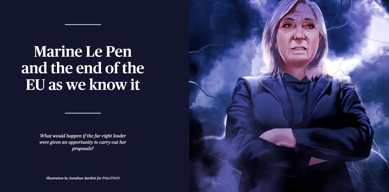 Το Politico παρουσιάζει ένα δυστοπικό σενάριο για το μέλλον της Ευρώπης σε περίπτωση που η Μαρίν Λεπέν εκλεγεί πρόεδρος της Γαλλίας.