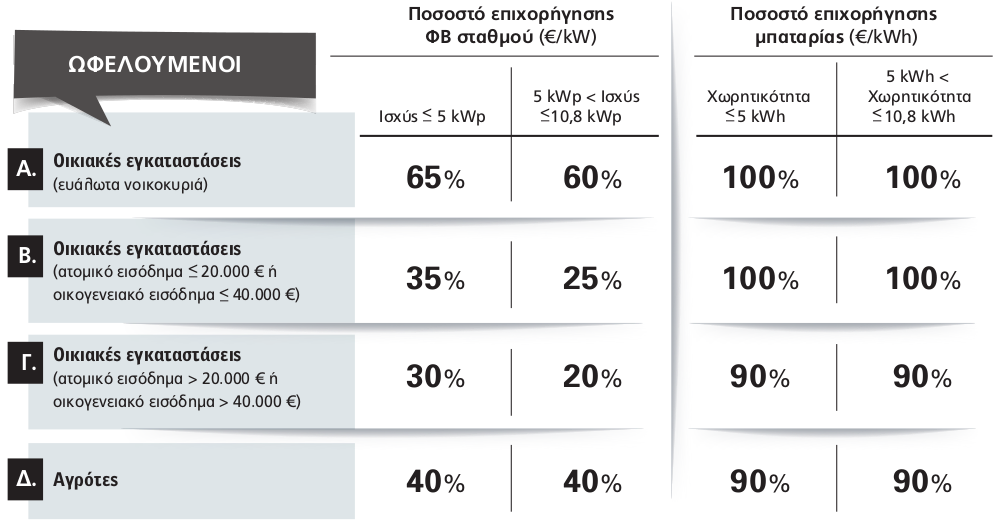 Ποσοστά επιχορήγησης φωτοβολταϊκού σταθμού και μπαταρίας