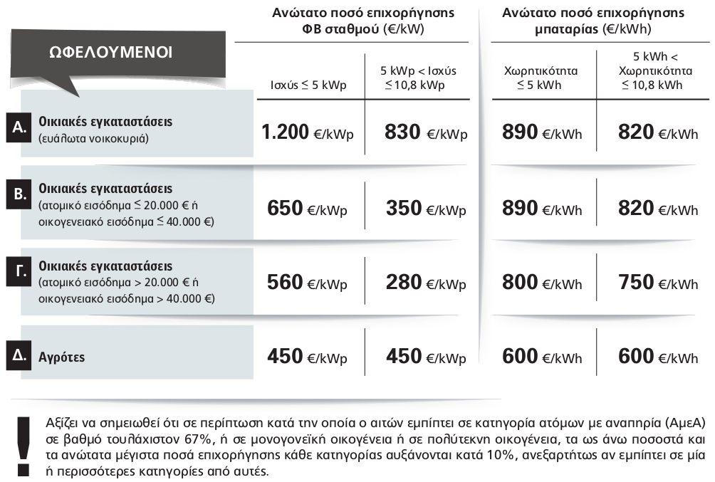 Ανώτατα ποσά επιχορήγησης φωτοβολταϊκού σταθμού και μπαταρίας