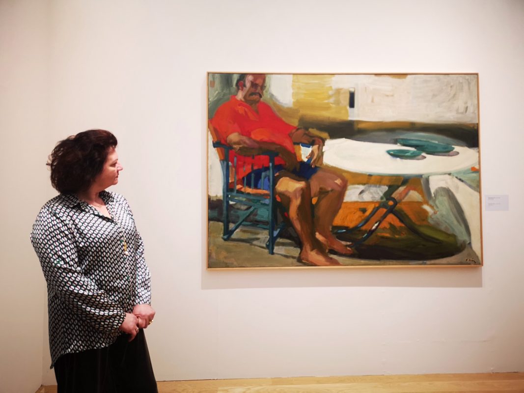 Η κ. Συραγώ Τσιάρα μπροστά σε ένα από τα αγαπημένα της έργα στην έκθεση