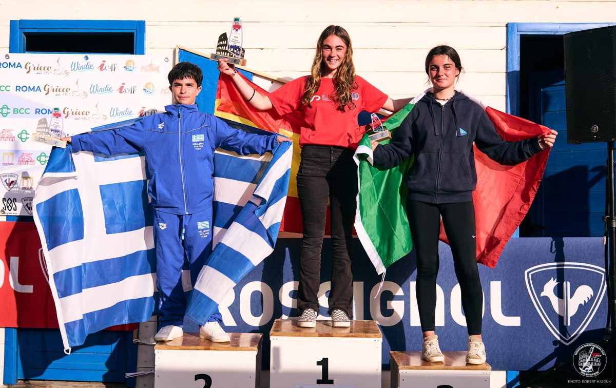 Στα κορίτσια η Ευαγγελία Γεωργάτου ήταν 5η με 56β. και η Ευγενία Υβόννη Γεννηματά 6η με 58,1 βαθμούς μεταξύ 29 σκαφών.