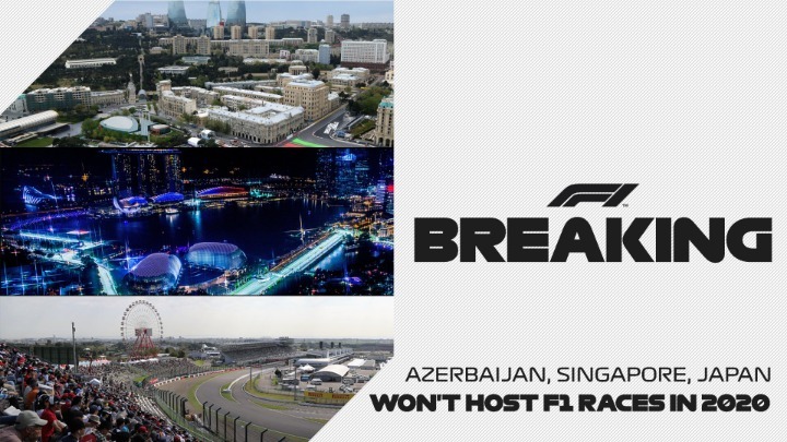 Πρόκειται, για τους αγώνες του Αζερμπαϊτζάν, που είχε ήδη αναβληθεί, της Σιγκαπούρης (σ.σ. είχε προγραμματισθεί για τις 20 Σεπτεμβρίου) και της Ιαπωνίας (11 Οκτωβρίου).
