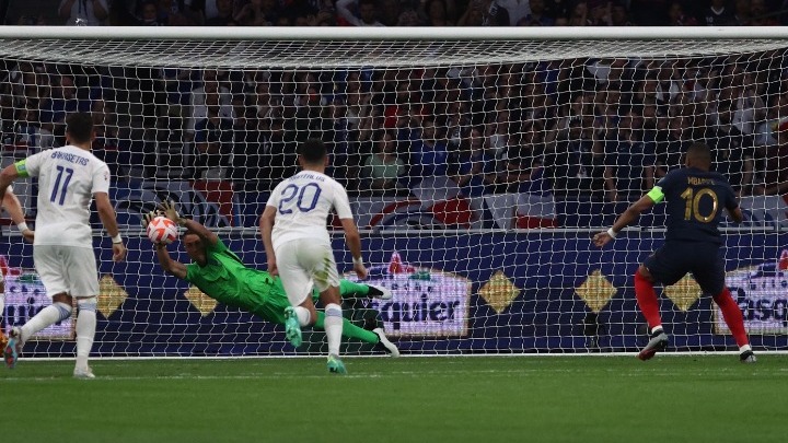 Μια απόκρουση ξεκάθαρη και νόμιμη καθ΄ όλα, αφού ο κίπερ της Μπενφίκα πατούσε τη γραμμή, αλλά η είσοδος του Μαυροπάνου πριν το σουτ του αστέρα της Παρί έφερε επανάληψη και παρότι ο Βλαχοδήμος έπεσε και πάλι σωστά, στην αριστερή γωνία του αυτή τη φορά, δεν κατάφερε να αποσοβήσει το 1-0 για τη Γαλλία, με τον Μπαπέ να γίνεται με συνολικά 54 γκολ (σύλλογος και Εθνική) πρώτος σκόρερ όλων των εποχών στο γαλλικό ποδόσφαιρο, για μια μόνο περίοδο.