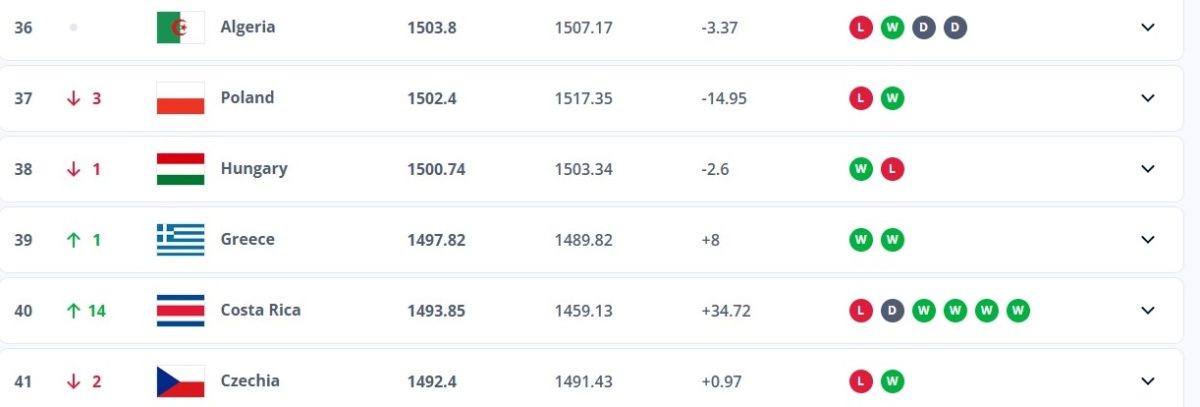 Κάπως έτσι συγκέντρωσε οκτώ βαθμούς, με τους οποίους κέρδισε μία θέση στο Fifa Ranking, με την Ελλάδα να βρίσκεται πλέον στην 39η θέση της παγκόσμιας κατάταξης, που αποτελεί την υψηλότερη «βάση» της Εθνικής την τελευταία διετία που πέρυσι τον Ιούλιο ήταν στην 54η θέση.