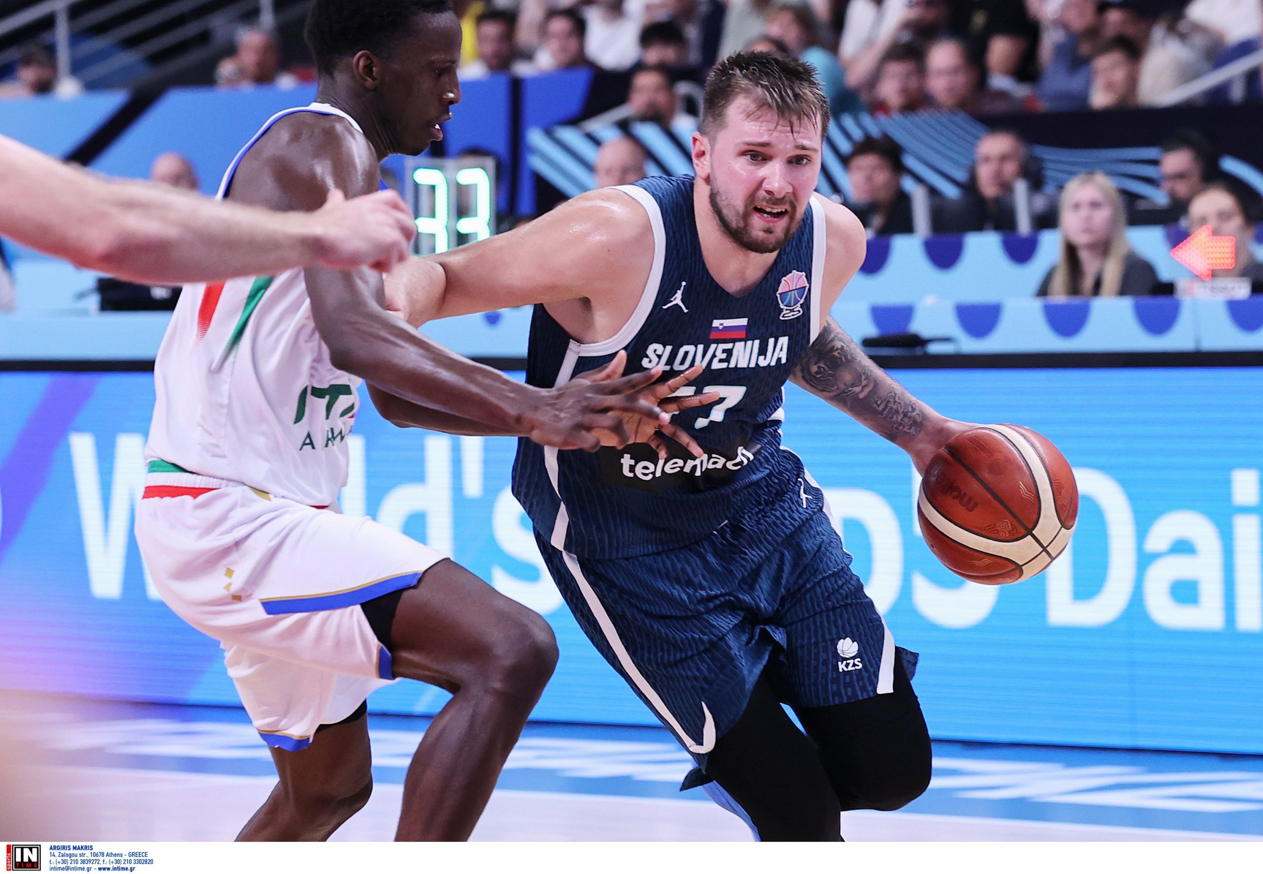 Στα πρώτα λεπτά της αναμέτρησης ο Λούκα Ντόντσιτς, ήταν στην κυριολεξία μίας ομάδα μόνος του, αφού σημείωσε τους 20 από τους συνολικά 29 πόντους της Σλοβενίας με τον κόουτς Ποτσέκο να μην μπορεί ένα πλάνο να τον σταματήσει. Η “σκουάντρα ατζούρα” ήταν πολύ αγχωμένη, άστοχη από την περιφέρεια και η συγκομιδή των 11 πόντων, ήταν εξαιρετικά φτωχή.