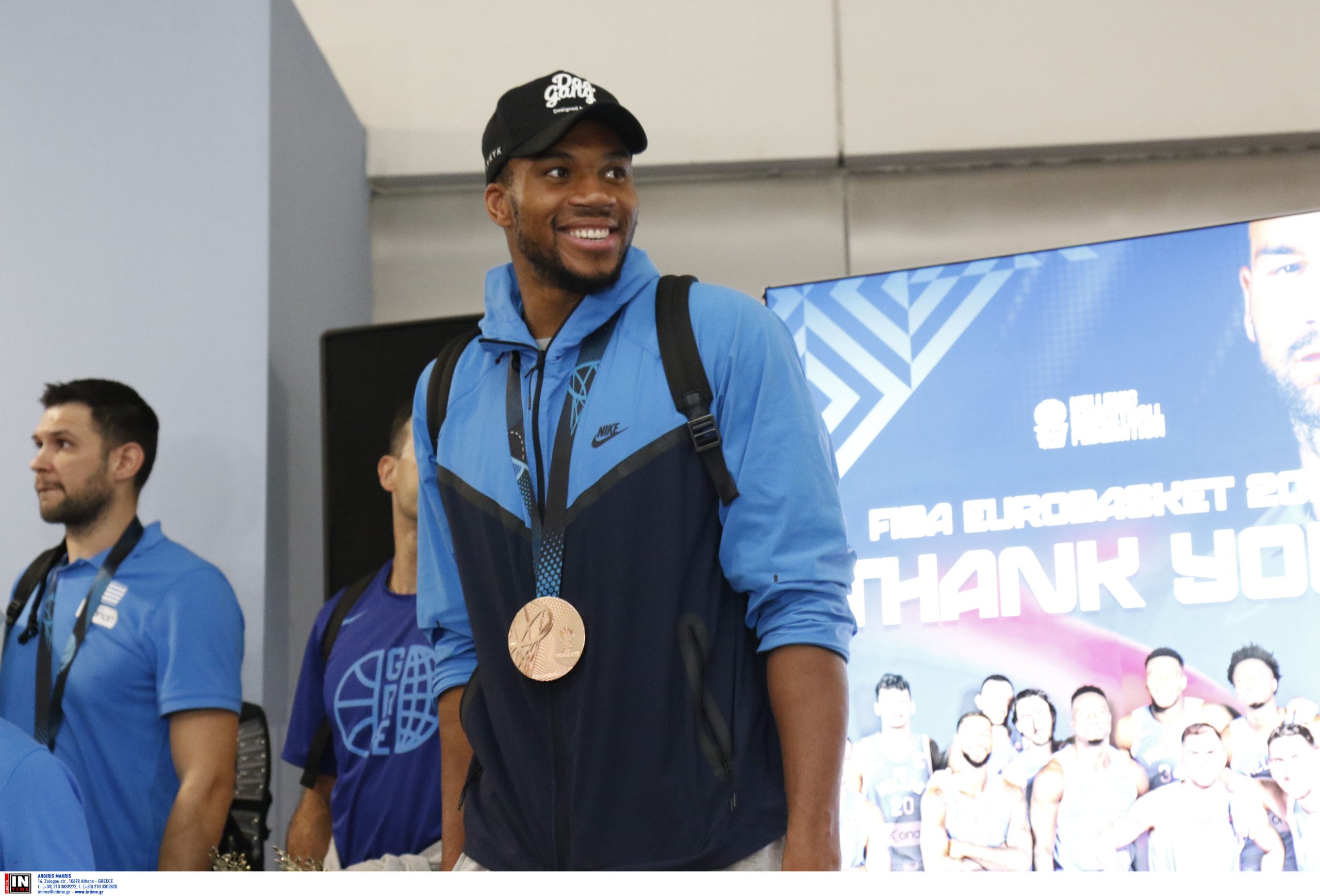 Ο Γιάννης Αντετοκούνμπο κατά την αποχώρησή του από το αεροδρόμιο δήλωσε κουρασμένος, καθώς δεν έχει κοιμηθεί όλο το βράδυ, μετά τον μικρό τελικό με τη Φινλανδία.