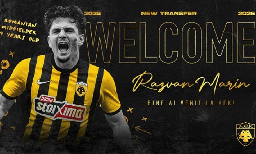«H ΠΑΕ ΑΕΚ ανακοινώνει την απόκτηση του διεθνή Ρουμάνου μέσου Ράζβαν Μάριν, με μεταγραφή από την Κάλιαρι.