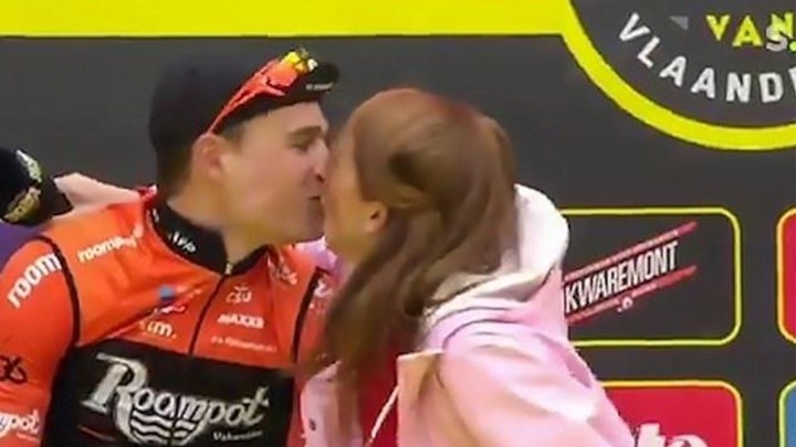 Η 34χρονη Βελγίδα δημοσιογράφος Linde Merckpoel έπαιρνε συνέντευξη από τον 29χρονο ποδηλάτη Stijn Steels. Μόλις η συνέντευξη τελείωσε, η δημοσιογράφος θέλησε να δώσει μία αγκαλιά και ένα φιλί στο μάγουλο του ποδηλάτη.