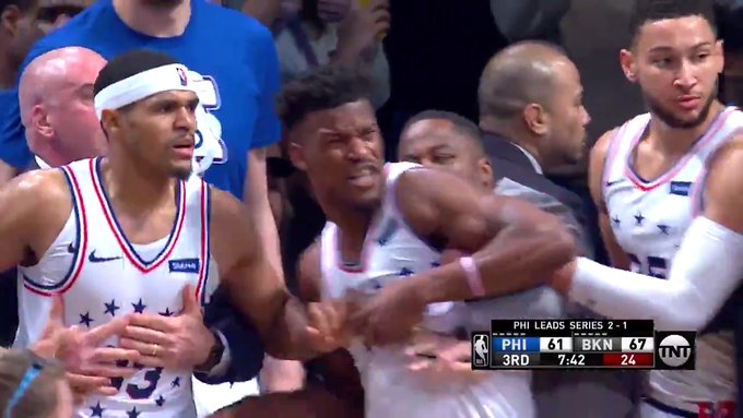 Συγκεκριμένα στην 3η περίοδο, μετά από ένα σκληρό φάουλ του Εμπίντ στον Άλεν, πιάστηκαν στα χέρια ο φόργουορντ των γηπεδούχων, Ντάντλεϊ, με δύο παίκτες των φιλοξενούμενων (Σίμονς, Μπάτλερ).