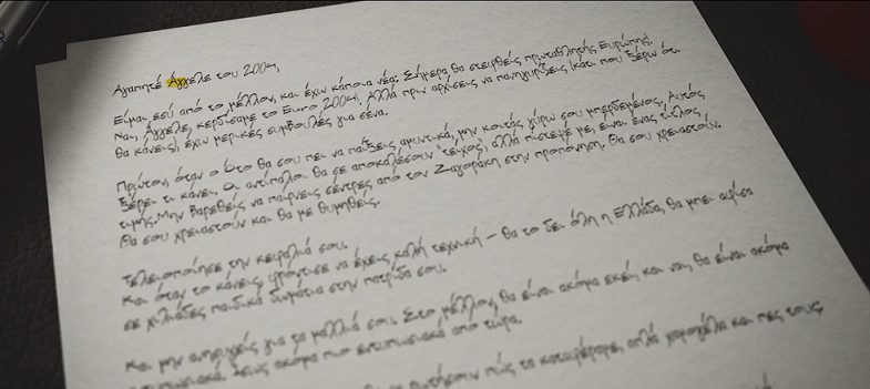 Ο Άγγελος Χαριστέας «ακροβατεί» μεταξύ παρόντος και παρελθόντος και απευθύνεται μέσω του ΟΠΑΠ στον Άγγελο Χαριστέα του 2004, λίγες ώρες πριν σκοράρει στον τελικό των τελικών. Τι θα του έλεγε αν μπορούσε να τον ακούσει; Πώς θα τον προετοίμαζε για το ότι θα πετύχαινε το σημαντικότερο γκολ στην ιστορία του ελληνικού αθλητισμού;