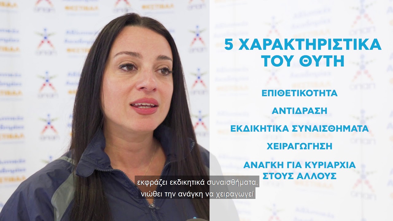 Η εκπαιδευτική–εξελικτική ψυχολόγος Στέλλα Αργυρίου, η οποία συμμετέχει στις επιστημονικές δράσεις των Αθλητικών Ακαδημιών ΟΠΑΠ, παρουσιάζει τα πέντε βασικά χαρακτηριστικά στις συμπεριφορές του «νταή» και του θύματος του bullying, καθώς και πέντε τρόπους για την καταπολέμηση του σχολικού εκφοβισμού.