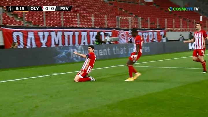 Ο Ολυμπιακός άνοιξε το σκορ μόλις στο 9ο λεπτό της αναμέτρησης με την Αϊντχόφεν.