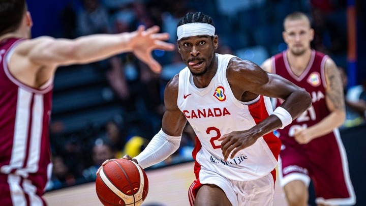 Ο Καναδάς βρέθηκε στο -11 (12-23) προς τα τέλη της 1ης περιόδου, όμως στο 2ο δεκάλεπτο απάντησε με επιμέρους σκορ 30-19 χάρη σε τρίποντα του Νικέιλ Αλεξάντερ Ουόκερ και του Σάι Γκίλτζιους-Αλεξάντερ, αλλά και με καταλυτικό τον φόργουορντ Κέλι Ολινίκ. Ο Καναδάς πήγε στο +1 στα αποδυτήρια στο ημίχρονο (43-42). Έκτοτε, δεν απειλήθηκε ουσιαστικά από τη Λετονία.