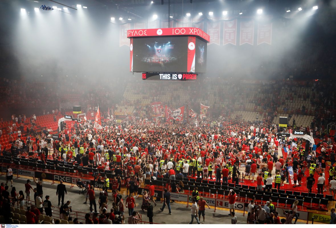 Με τους φιλάθλους να έχουν κατέβει από τις κερκίδες, να έχουν μπει μέσα στο παρκέ, να κρατούν ερυθρόλευκες και ελληνικές σημαίες και να τραγουδούν… δεν μπορώ, δεν μπορώ να περιμένω… μέχρι ο πρόεδρος του ΕΣΑΚΕ, Μιχάλης Μελής να παραδίδει την Κούπα του πρωταθλητή Ελλάδας στους… κατόχους της!