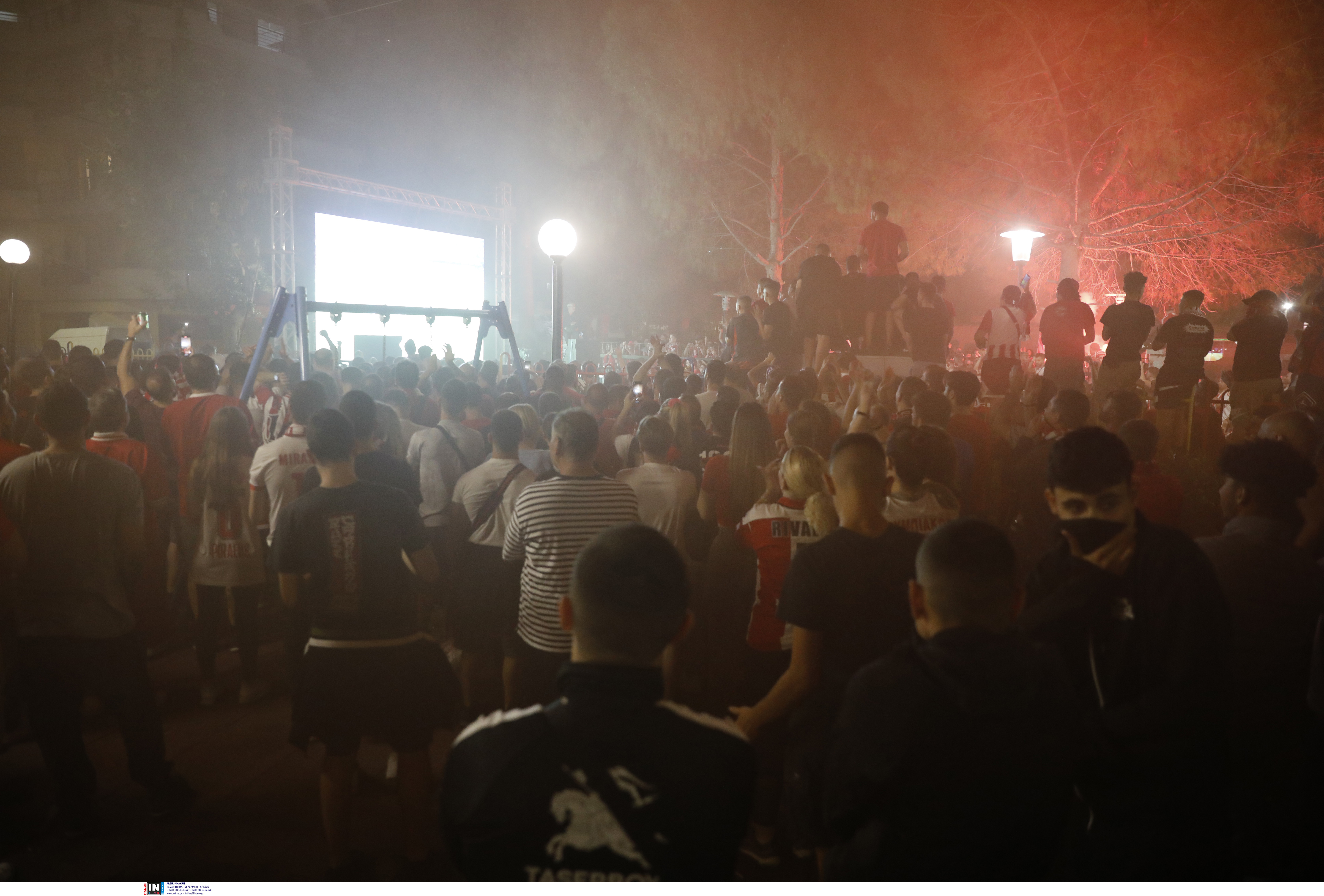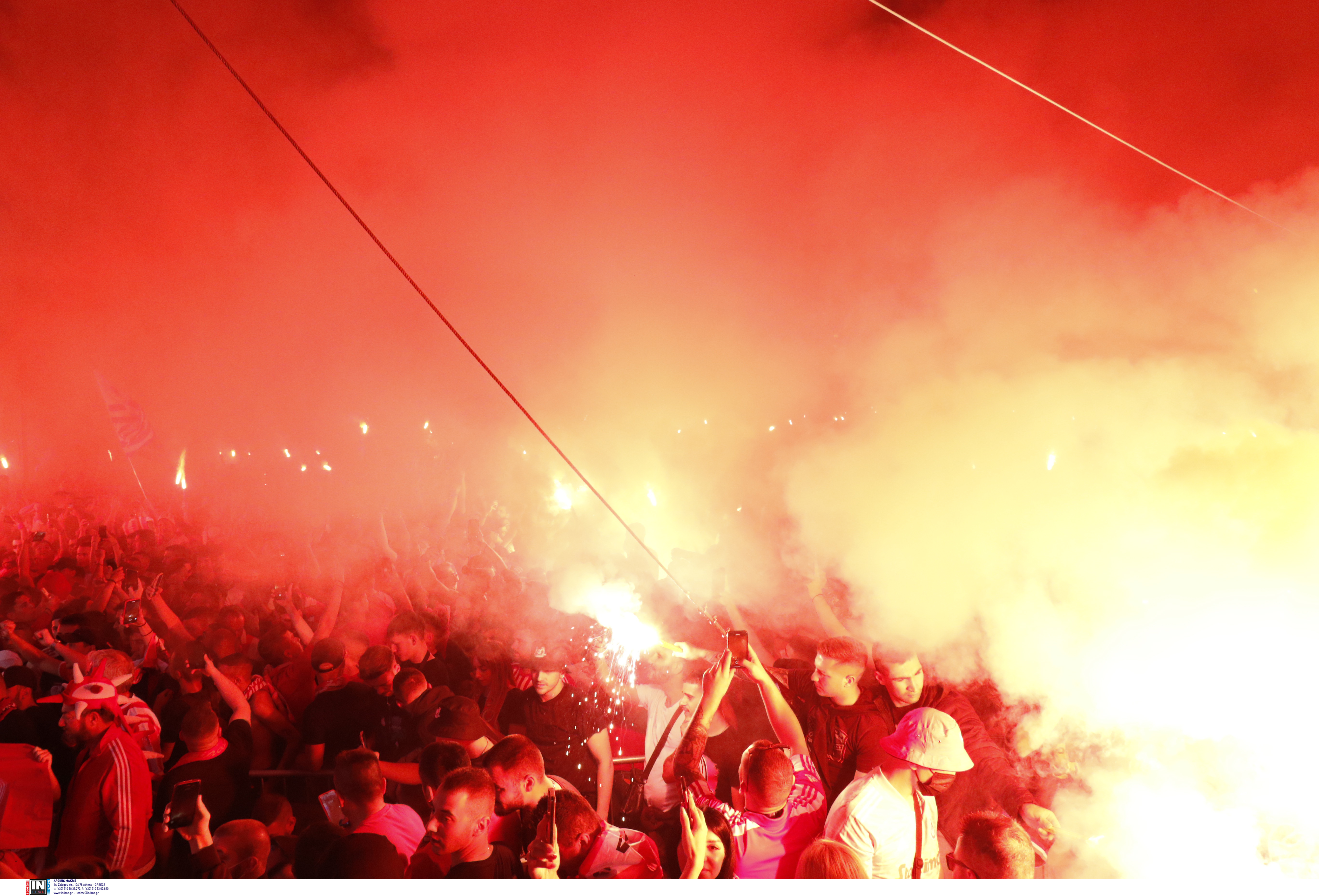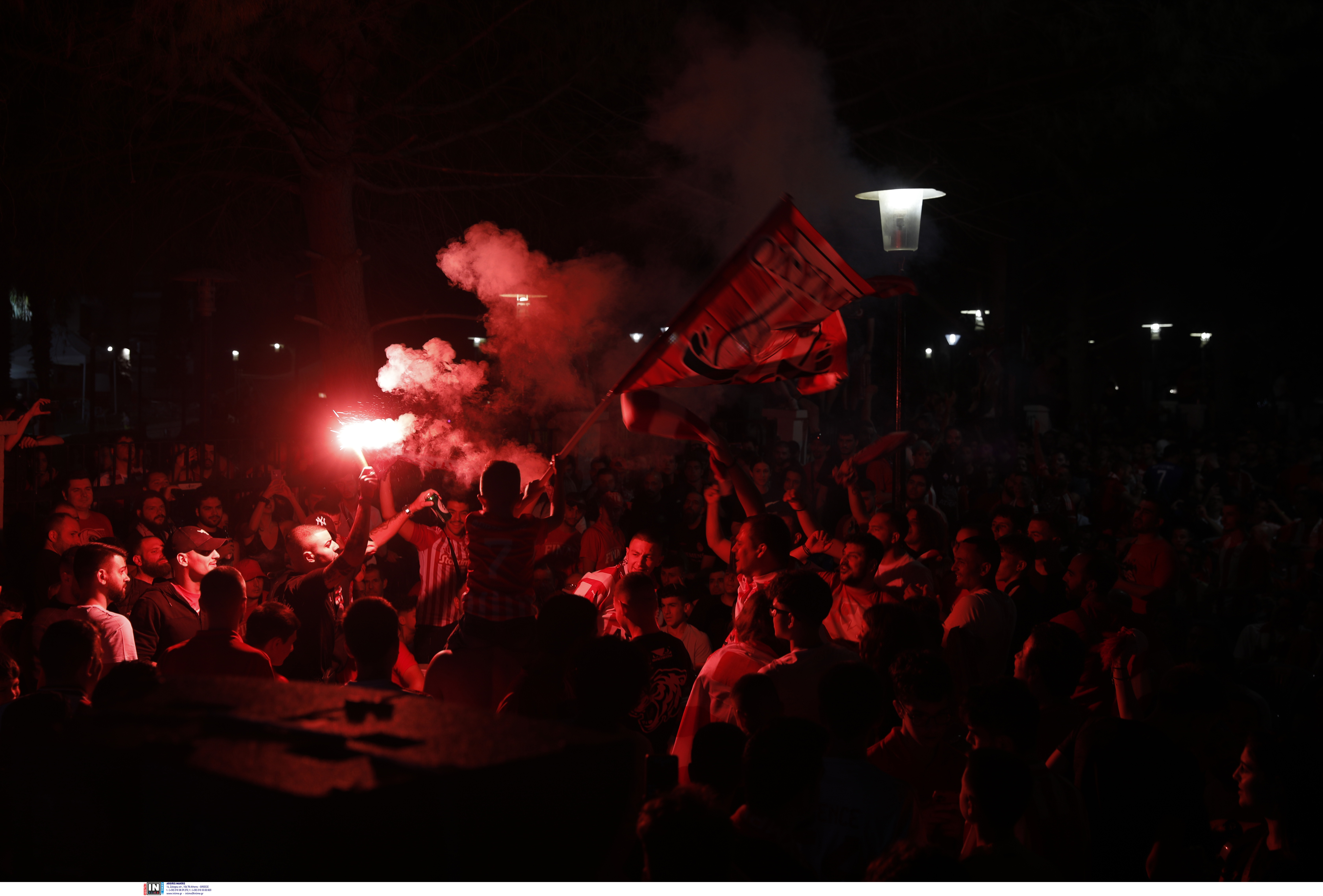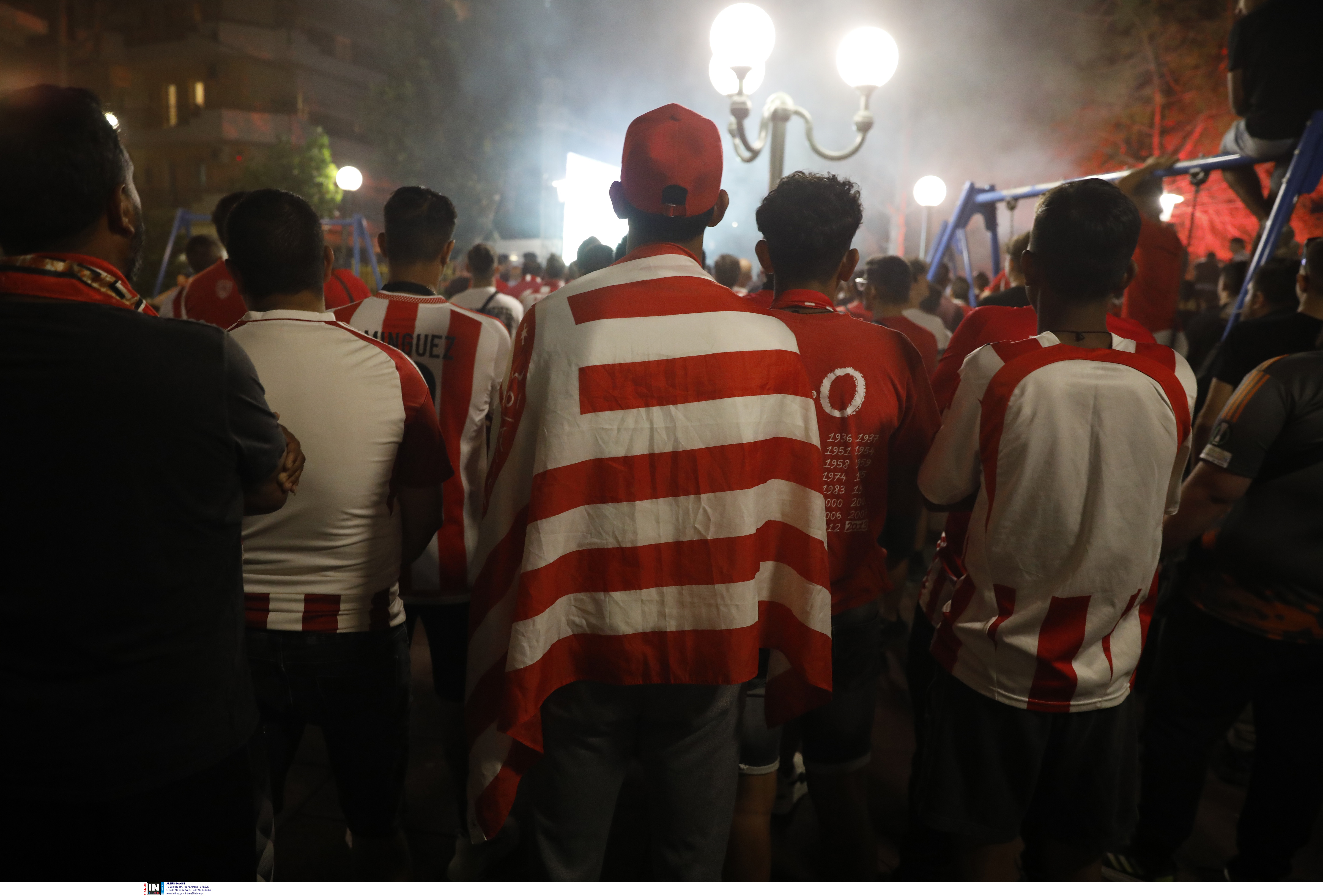Πειραιάς: Χιλιάδες οπαδοί του Ολυμπιακού στην πλατεία Κοραή – ΕΙΚΟΝΕΣ