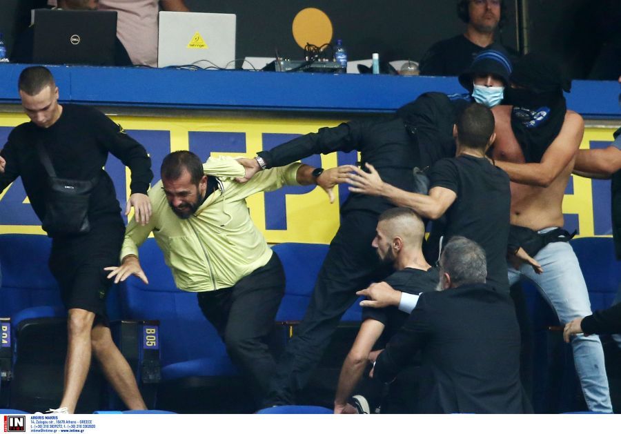 Σύμφωνα με την ΕΡΤ, μερίδα κουκουλοφόρων κατευθύνθηκε προς τα επίσημα του γηπέδου, δημιουργώντας επεισόδια. Οι διαιτητές αντιλήφθηκαν αμέσως την ένταση και έστειλαν τις δύο ομάδες στα αποδυτήρια.