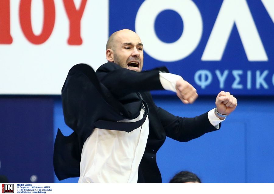 Ο Βασίλης Σπανούλης κάθισε στον πάγκο του Περιστερίου με απαθές ήφος την ώρα της διακοπής του αγώνα περιμένοντας την εξέλιξη της αναμέτρησης.