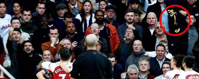 Ο Πιέρ Εμερίκ Ομπαμεγιάνγκ, σκόραρε δις στο 4-2 της ομάδας του απέναντι στην Τότεναμ στο “Έμιρεϊτς”, ωστόσο κατά τη διάρκεια των πανηγυρισμών του μετά το 1-0 που διαμόρφωσε με πέναλτι στο 10', μία μπανανόφλουδα προσγειώθηκε στον αγωνιστικό χώρο, από την πλευρά των οπαδών των φιλοξενούμενων.