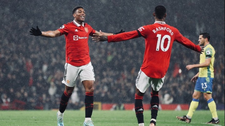 Ο Μάρκους Ράσφορντ με το 64ο του γκολ στο πρωτάθλημα («έπιασε» τον Ερίκ Καντονά) άνοιξε το σκορ στο «Ολντ Τράφορντ» στο 19΄ και τέσσερα λεπτά ο Μαρσιάλ πέτυχε το δεύτερο γκολ των «μπέμπηδων».