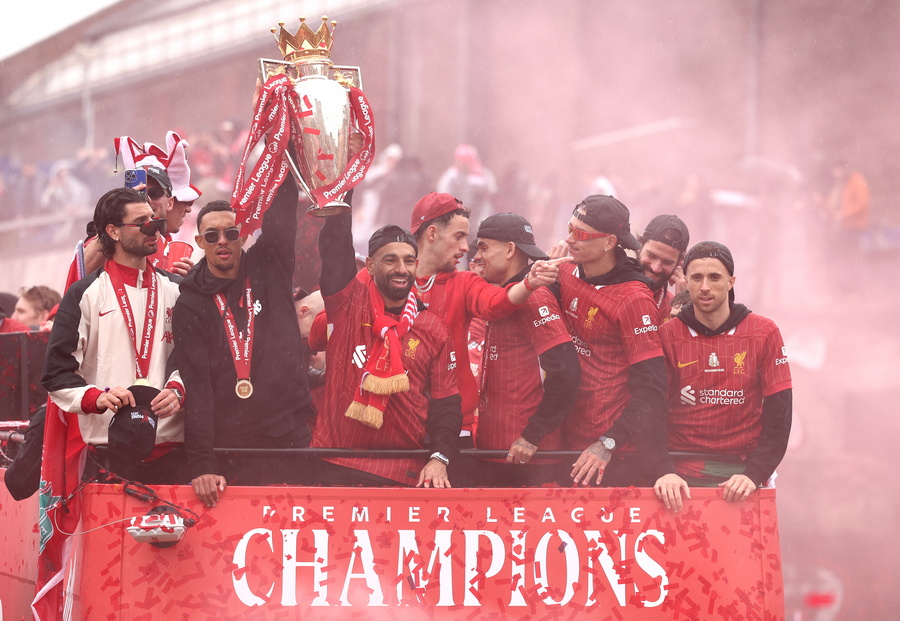 Οι παίκτες της Λίβερπουλ γιόρτασαν σήμερα (26/5) την κατάκτηση στην Premier League με μια θριαμβευτική παρέλαση σε ένα ανοιχτό λεωφορείο στους δρόμους της πόλης, μπροστά σε χιλιάδες εκστασιασμένους οπαδούς τους.