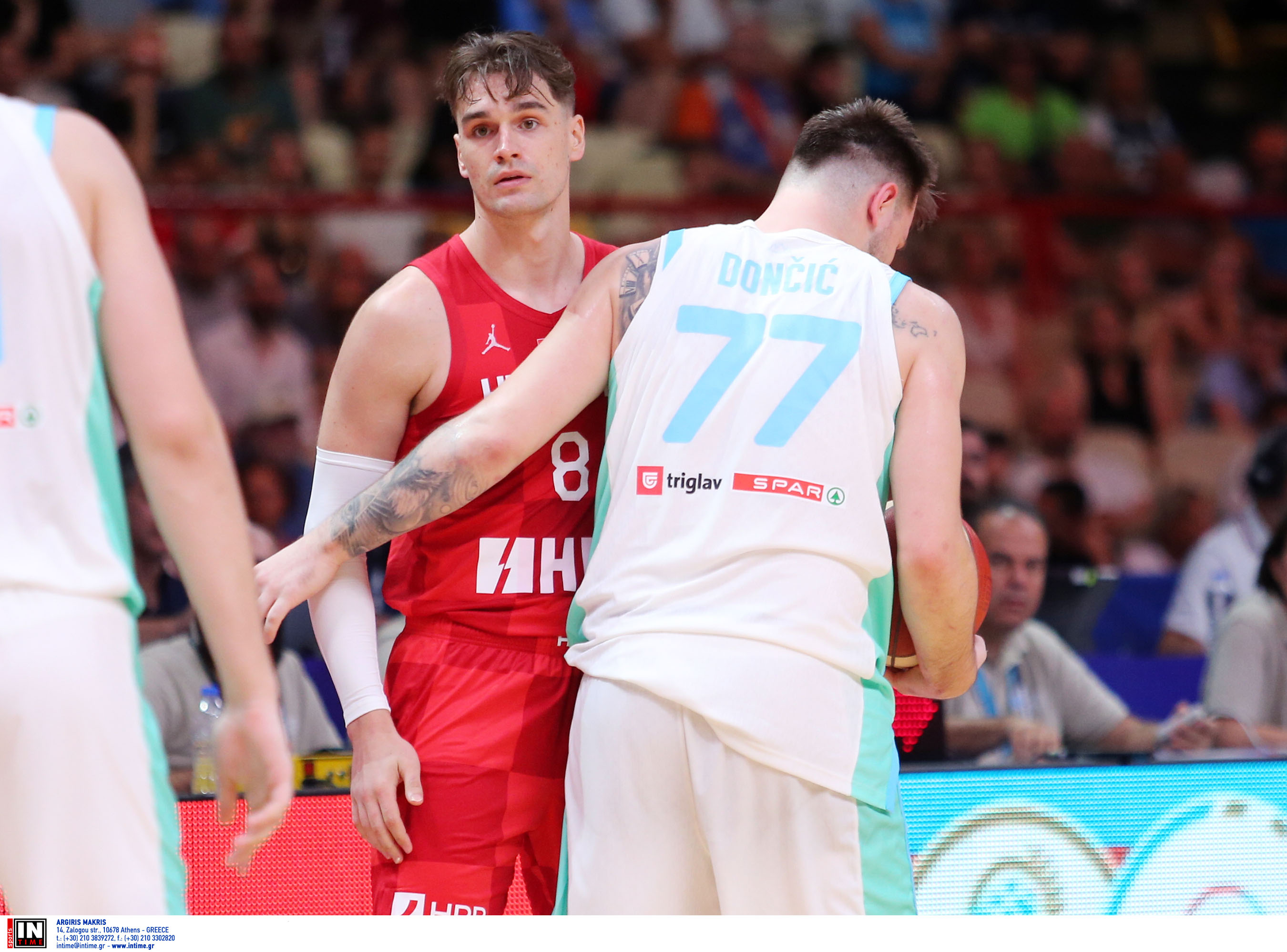 Με το δίδυμο των ψηλών ΝΒΑers Ντάριο Σάριτς (19π., 10ρ., 10ασ.) και Ίβιτσα Ζούμπατς (18π., 8ρ., 5ασ.) να κυριαρχεί σε σκορ και ριμπάουντ, τα τρίποντα του «καυτού» Γκόραν Φιλίποβιτς (21π. με 6/7 τρίποντα και 6 ασίστ!), τον Ντάνκο Μπράνκοβιτς να μετρά 15 πόντους και τη σταθερή αξία του Μάριο Χεζόνια (12π., 6ρ. 8ασ.), η «Χρβάτσκα» εξέθεσε τη σλοβενική άμυνα, εξέθεσε και τον… άστοχο έξω από τα 6.75 σούπερ σταρ των φιναλίστ του ΝΒΑ φέτος, Ντάλας Μάβερικς, Λούκα Ντόντσιτς (26π. Με 0/9 τρίποντα, 11ρ., 10ασ.).