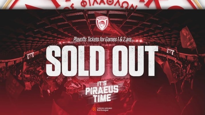 Η ΚΑΕ Ολυμπιακός ανακοίνωσε sold out στις 18:00 το απόγευμα της Παρασκευής (11/4) για τα Game 1 και Game 2 που θα πραγματοποιηθούν ή την Τρίτη 22/04/2025 και την Πέμπτη 24/04/2026 ή την Τετάρτη 23/04/2025 και την Παρασκευή 25/04/2025.