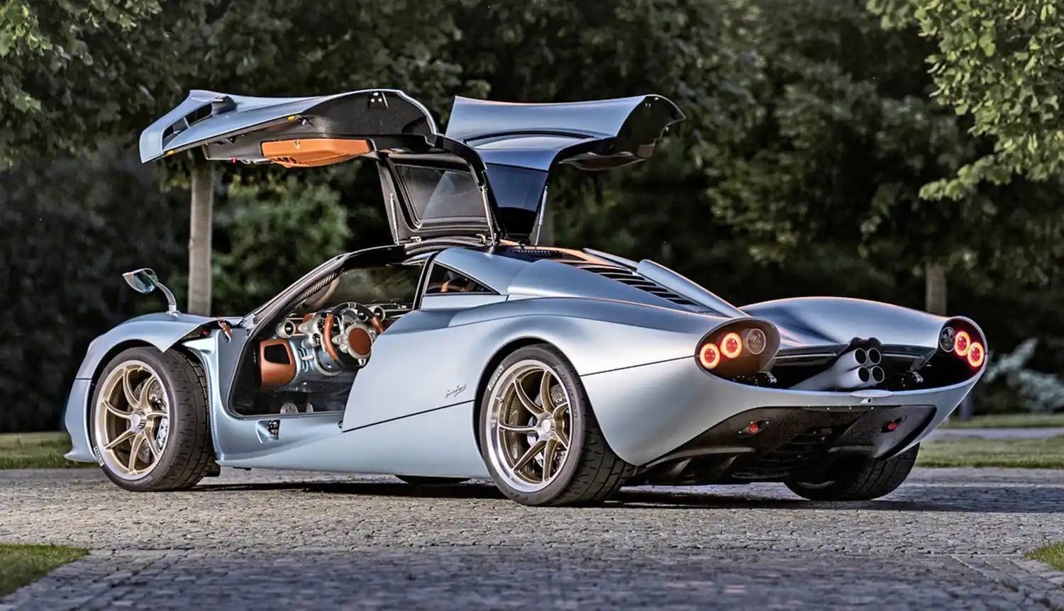 Πιο μακρύ και ρευστό σχεδιαστικά από ένα Huayra, δείχνει εμπνευσμένο από τις μακριές «ουρές» της μακρινής αλλά νοσταλγικής δεκαετίας του ’60, που αγωνιζόταν στις πίστες.