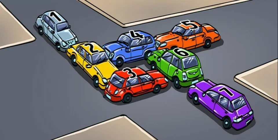 Σας παρουσιάζουμε ένα γρίφο που θα θέσει σε δοκιμασία τις δεξιότητές σας στην επίλυση προβλημάτων και την οξυδέρκειά σας. Σε μια πολυσύχναστη διασταύρωση, 7 αυτοκίνητα έχουν ακινητοποιηθεί, δημιουργώντας μποτιλιάρισμα.