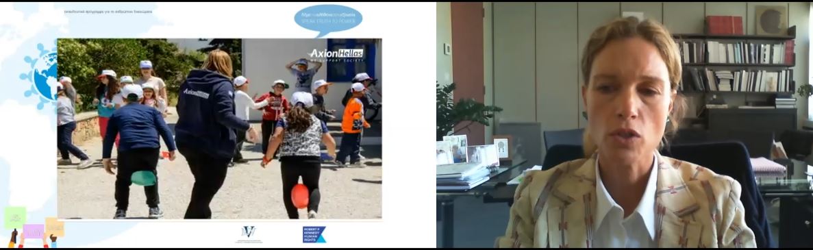 Παρούσα στη διαδικτυακή αυτή συνάντηση – Σεμινάριο ήταν και η AxionHellas, οργάνωση με την οποία συνεργάζεται το Ίδρυμα «Μαριάννα Β. Βαρδινογιάννη», στα πλαίσια του εκπαιδευτικού προγράμματος «ΛΕΜΕ ΤΗΝ ΑΛΗΘΕΙΑ ΣΤΗΝ ΕΞΟΥΣΙΑ», προκειμένου το μήνυμα της προστασίας των ανθρωπίνων δικαιωμάτων να φτάσει ακόμα και στις πιο απομακρυσμένες περιοχές της χώρας μας. Την AxionHellas εκπροσώπησε η κυρία Ιωάννα Μαρτίνου, υπεύθυνη των εκπαιδευτικών δράσεων, η οποία μίλησε για την εμπειρία τους στα ακριτικά νησιά της Ελλάδας, ενώ τόνισε τη σημασία διδασκαλίας του Προγράμματος σε ολόκληρη την χώρα: «Πρωταρχική μας μέριμνα αποτελούν οι ποικίλου περιεχομένου εκπαιδευτικές δράσεις που πραγματοποιούμε, για τους μαθητές των σχολείων αλλά και όλων των κατοίκων του κάθε νησιού. Αυτονόητα λοιπόν, το άκρως επιτυχημένο και με τόσο μεγάλη διεθνή απήχηση εκπαιδευτικό πρόγραμμα «Λέμε την Αλήθεια στην Εξουσία», δε θα μπορούσε να λείπει από τον σχεδιασμό μας. Γιατί, αυτό που το κάνει να ξεχωρίζει είναι η δύναμή του να εμπνέει δράση στους μαθητές μέσα από διάφορες μορφές δημιουργικής έκφρασης. Καθώς οι ίδιοι οι μαθητές αρχίζουν να αυτοπροσδιορίζονται ως υπερασπιστές των ανθρωπίνων δικαιωμάτων, ενισχύεται μέσα τους η πίστη στηνικανότητά τους να τα υπερασπίζονται και στην καθημερινή τους Ζωή».