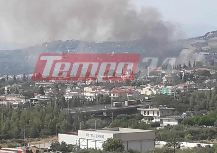 Μεγάλη κινητοποίηση της Πυροσβεστικής Υπηρεσίας στην Πάτρα για φωτιά που ξέσπασε το απόγευμα στην περιοχή Ριγανόκαμπος, κοντά σε καταυλισμό Ρομά.