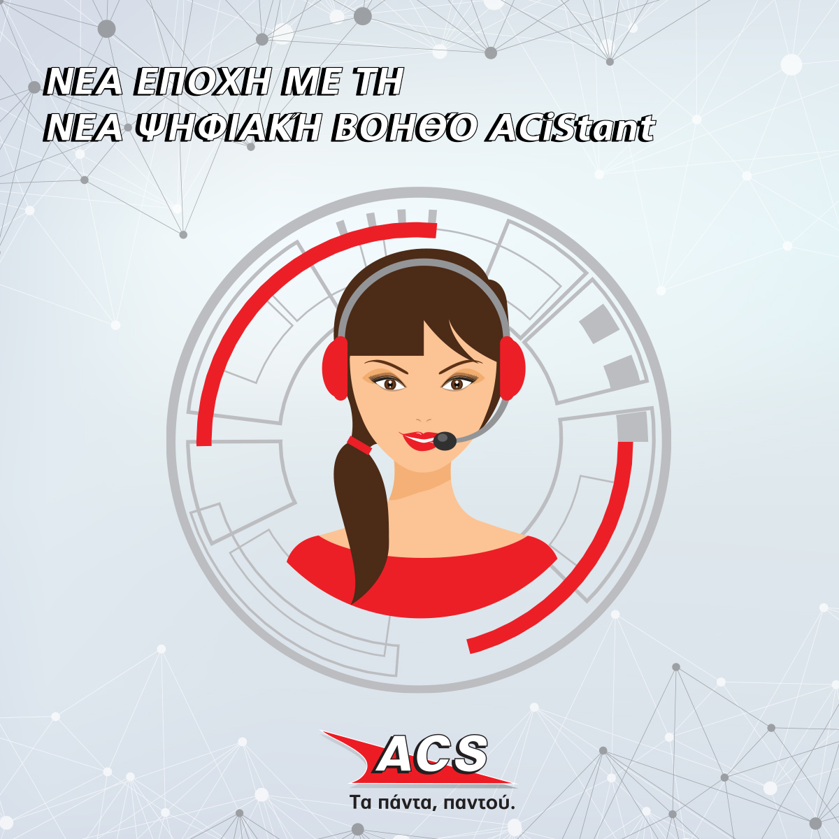 Στο πλαίσιο του ψηφιακού μετασχηματισμού της εταιρείας, και έχοντας βασική προτεραιότητα τη συνεχή βελτίωση της εμπειρίας των πελατών της, η ACS παρέχει περισσότερες επιλογές εξυπηρέτησης μέσω της ψηφιακής βοηθού ACiStant, η οποία είναι διαθέσιμη στο www.acscourier.net και στο ACS Mobile App.