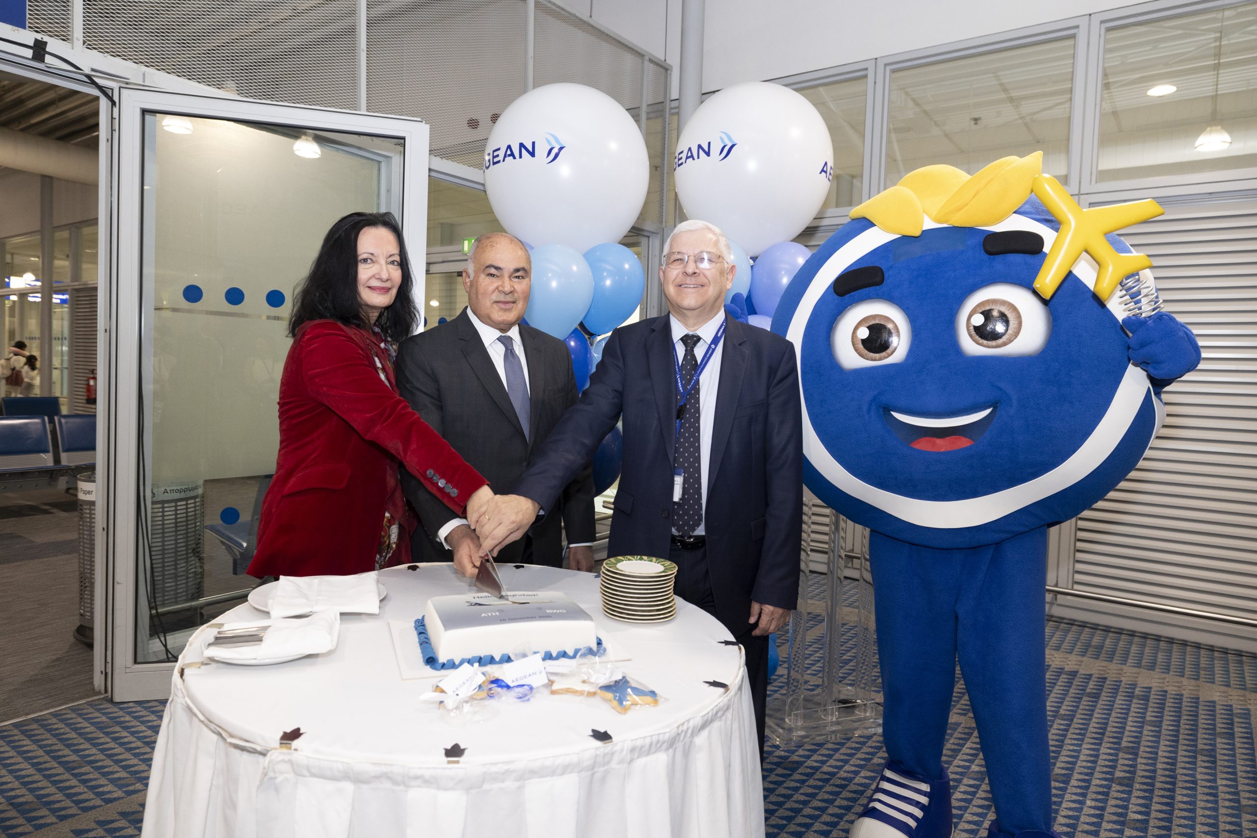 Με αφορμή την έναρξη της νέας απευθείας πτήσης, η AEGEAN, σε συνεργασία με το Διεθνές Αεροδρόμιο Αθηνών, διοργάνωσε ειδική εκδήλωση για τους επιβάτες της πρώτης πτήσης. Σύντομους χαιρετισμούς απηύθυναν η κα Ιωάννα Παπαδοπούλου, Director Communications & Marketing του Διεθνούς Αεροδρομίου Αθηνών, ο κ. Πάνος Νικολαΐδης, Chief Ground Operations της AEGEAN, καθώς και η Αυτού Εξοχότης, ο Πρέσβης της Δημοκρατίας του Ιράκ στην Αθήνα, κ. Mouayed Saleh, ο οποίος τίμησε την εκδήλωση με την παρουσία του.