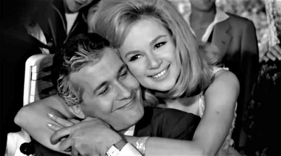 Η Αλίκη Βουγιουκλάκη και ο Δημήτρης Παπαμιχαήλ ποζάρουν χαμογελαστοί σε μια από τις ευτυχισμένες στιγμές της ζωής τους.