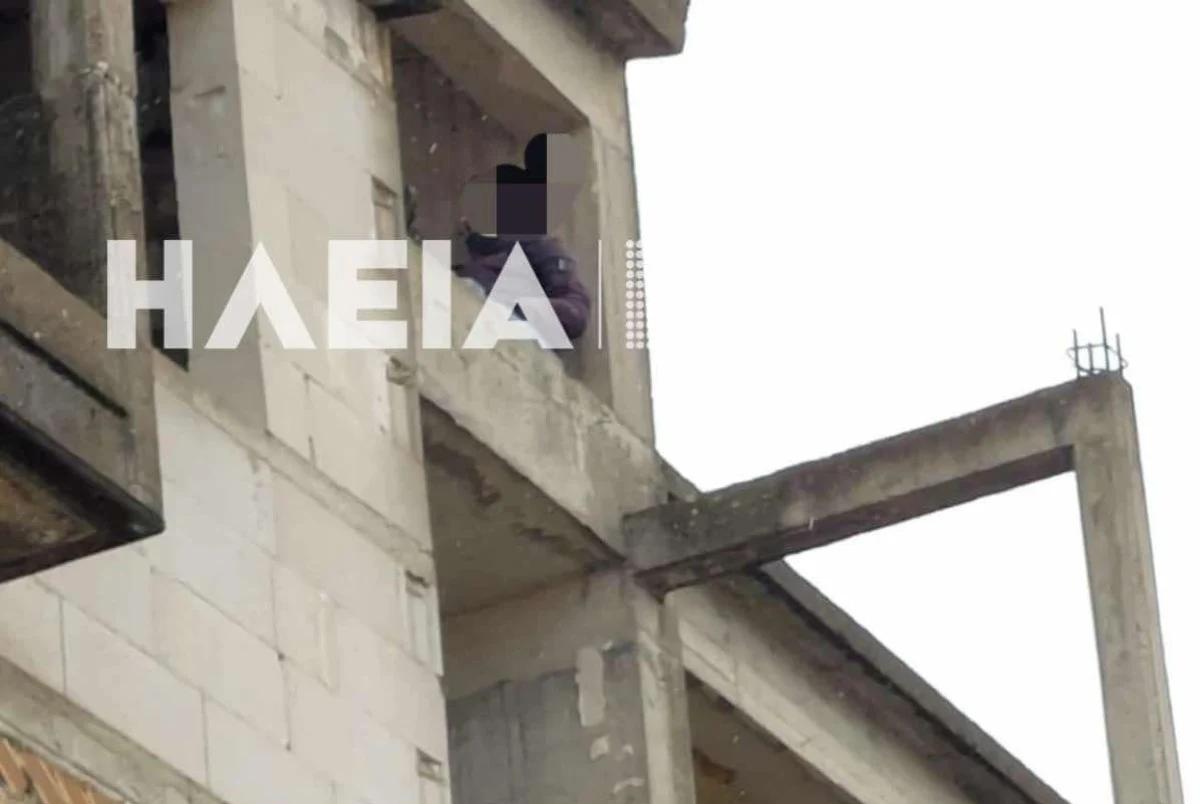 Σύμφωνα με το ilialive, ο άνδρας είχε ανέβει στην ταράτσα τριώροφου ημιτελούς κτιρίου, και φώναζε πως θα πηδήξει στο κενό.