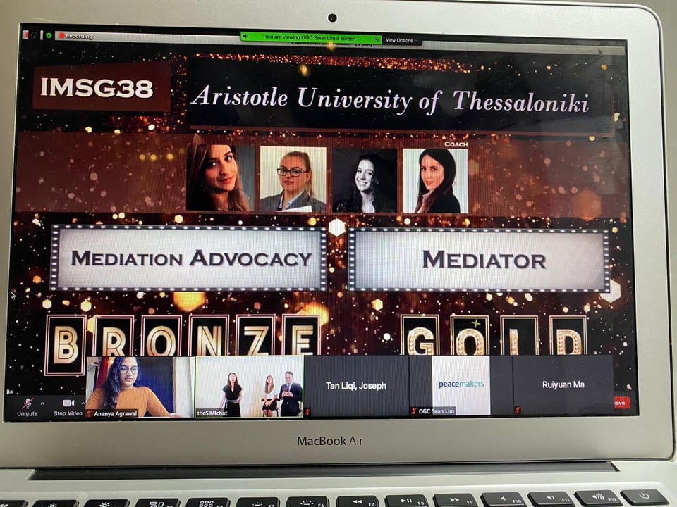 «Χρυσή» εν μέσω καραντίνας αναδείχθηκε φοιτητική ομάδα της Νομικής Σχολής του Αριστοτελείου Πανεπιστημίου Θεσσαλονίκης, μέσα από τη συμμετοχή της στον Διεθνή Διαγωνισμό Διαμεσολάβησης και Διαπραγμάτευσης, που διοργάνωσε το Διεθνές Ινστιτούτο Διαμεσολάβησης της Σιγκαπούρης.