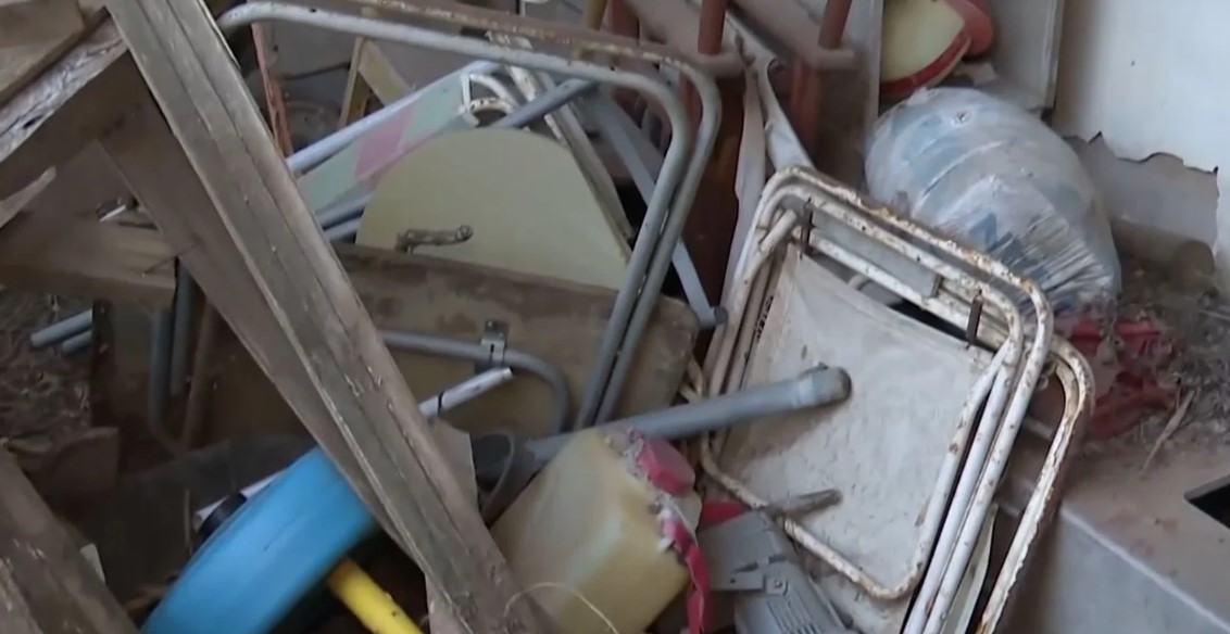 Όπως φαίνεται σε βίντεο του ΑΝΤ1, το εσωτερικό του κτιρίου θυμίζει εγκαταλελειμμένο τοπίο. Υπάρχουν παντού σκονισμένες ταμπέλες, χόρτα, μπιτόνια, προβολείς και πλαστικές καρέκλες. Μάλιστα η οροφή του κτιρίου έχει πέσει.