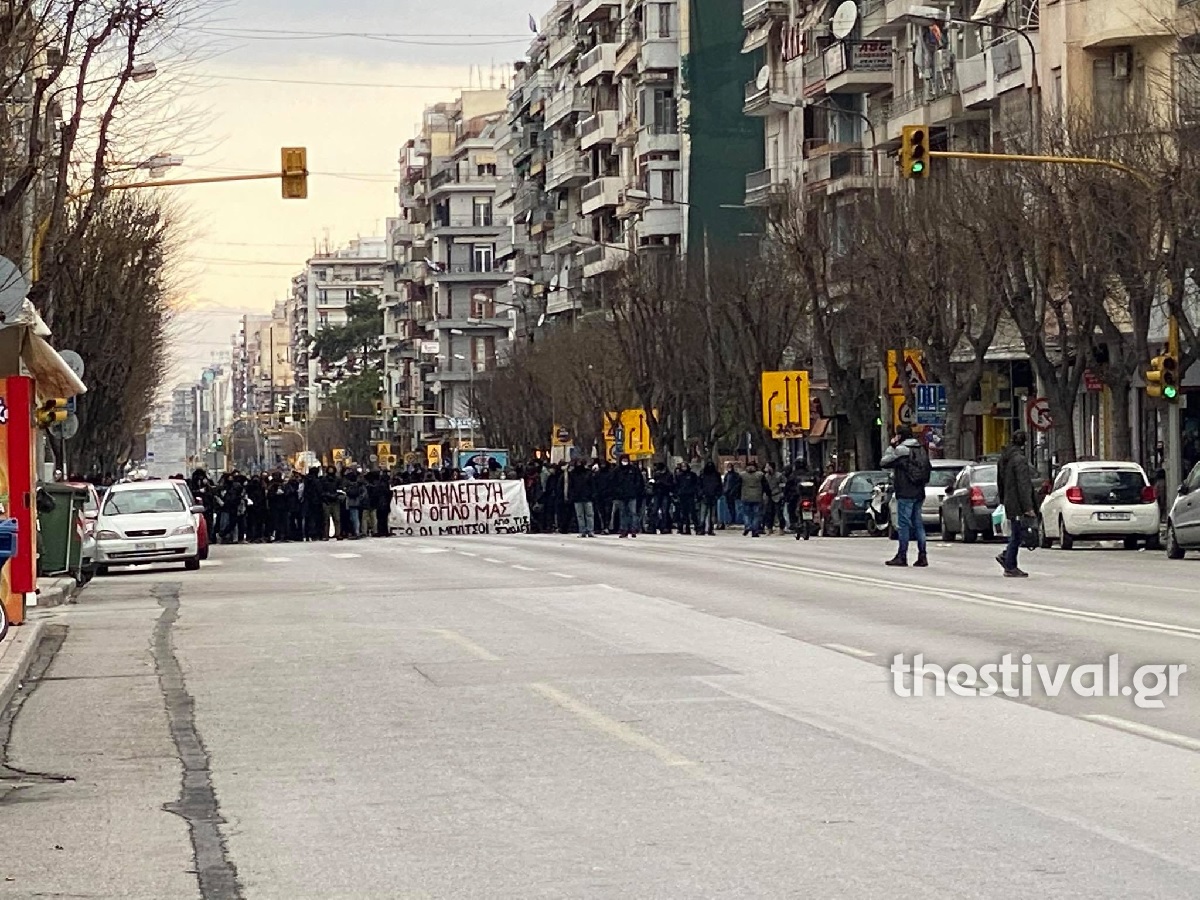 Οι διαδηλωτές έχουν συγκεντρωθεί στην οδό Εγνατία μπροστά από τη Σχολή Θεάτρου.