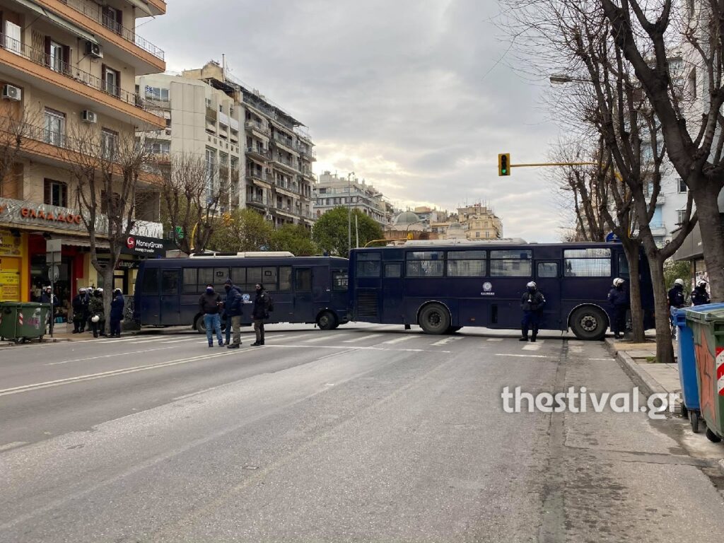 Δυνάμεις των ΜΑΤ έχουν στήσει φραγμό στην οδό Ιασωνίδου και δεν τους επιτρέπουν να προσεγγίσουν το ΑΠΘ.