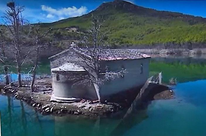 Όπως αναφέρει το MEGA, πρόκειται για το εκκλησάκι των Αγίων Θεοδώρων που εμφανίστηκε και πάλι όταν έπεσε η στάθμη του φράγματος Πείρου Αντιπείρου. Το εκκλησάκι που δέσποζε στο κέντρο της τεχνητής λίμνης είχε βυθιστεί εξ’ ολοκλήρου με την άνοδο της στάθμης των νερών.