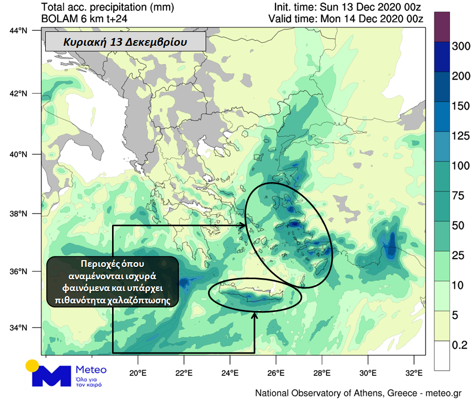 Τα μεγαλύτερα ύψη βροχής καταγράφηκαν στο Φουρφουρά Ρεθύμνου (73 χιλιοστά), στη Μεγίστη Λαύρα (46), στη Γλώσσα Σκοπέλου (38) και στη Λήμνο και Χίο (36 χιλιοστά και στις δύο).
