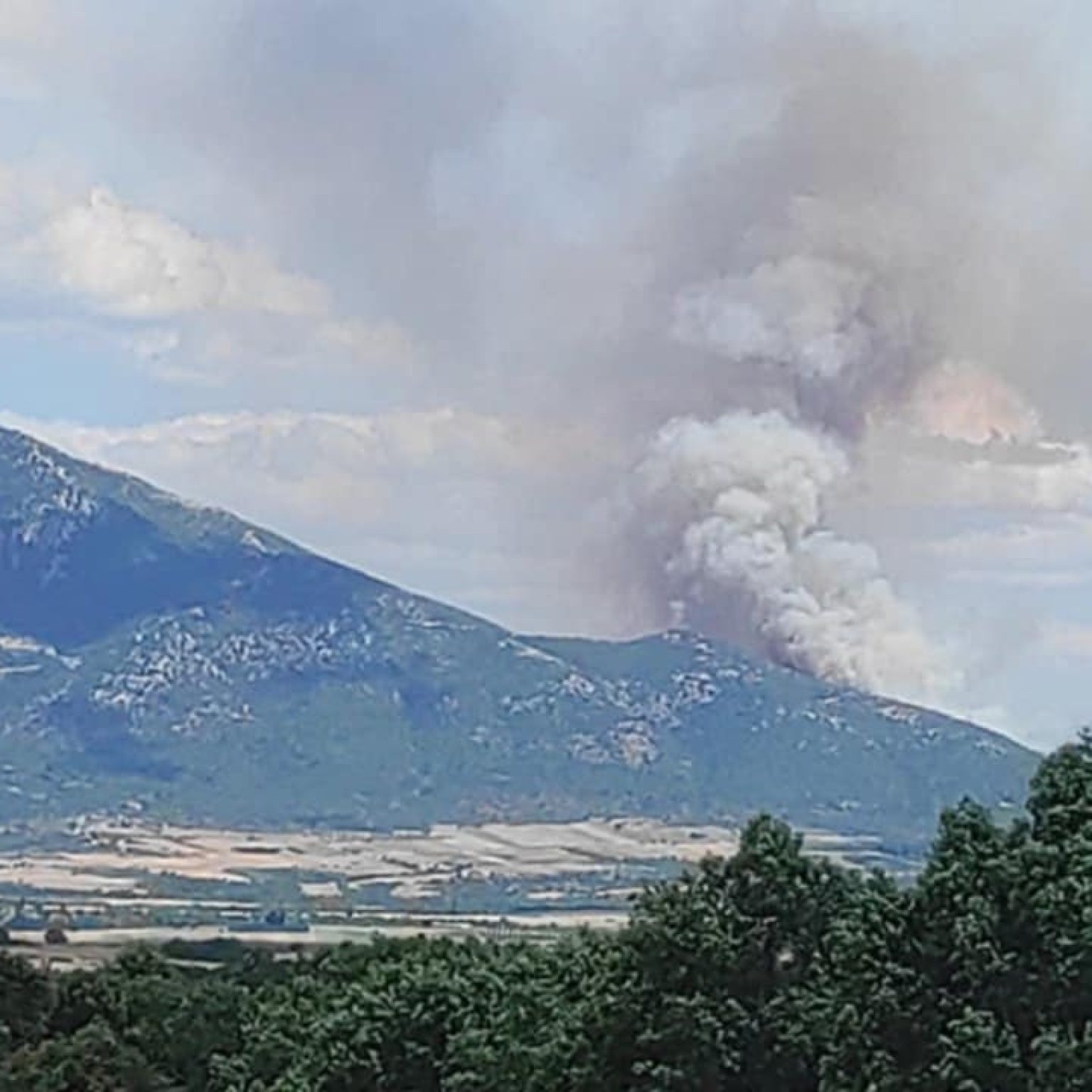 Στην περιοχή πνέουν άνεμοι, που δυσχαιραίνουν την επιχείρηση κατάσβεσης.