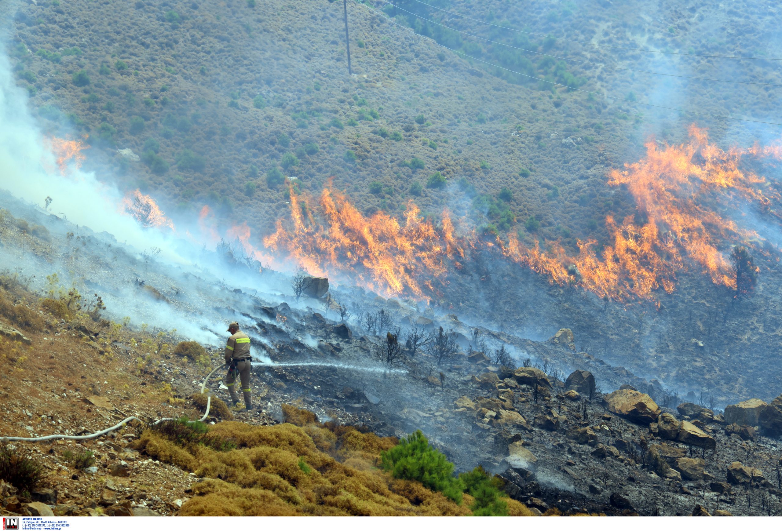Σε εξέλιξη είναι η πυρκαγιά που συνεχίζει να καίει από χτες, Τρίτη 12 Αυγούστου, το μεσημέρι, δασική και χαμηλή βλάστηση στη βορειοδυτική Χίο.