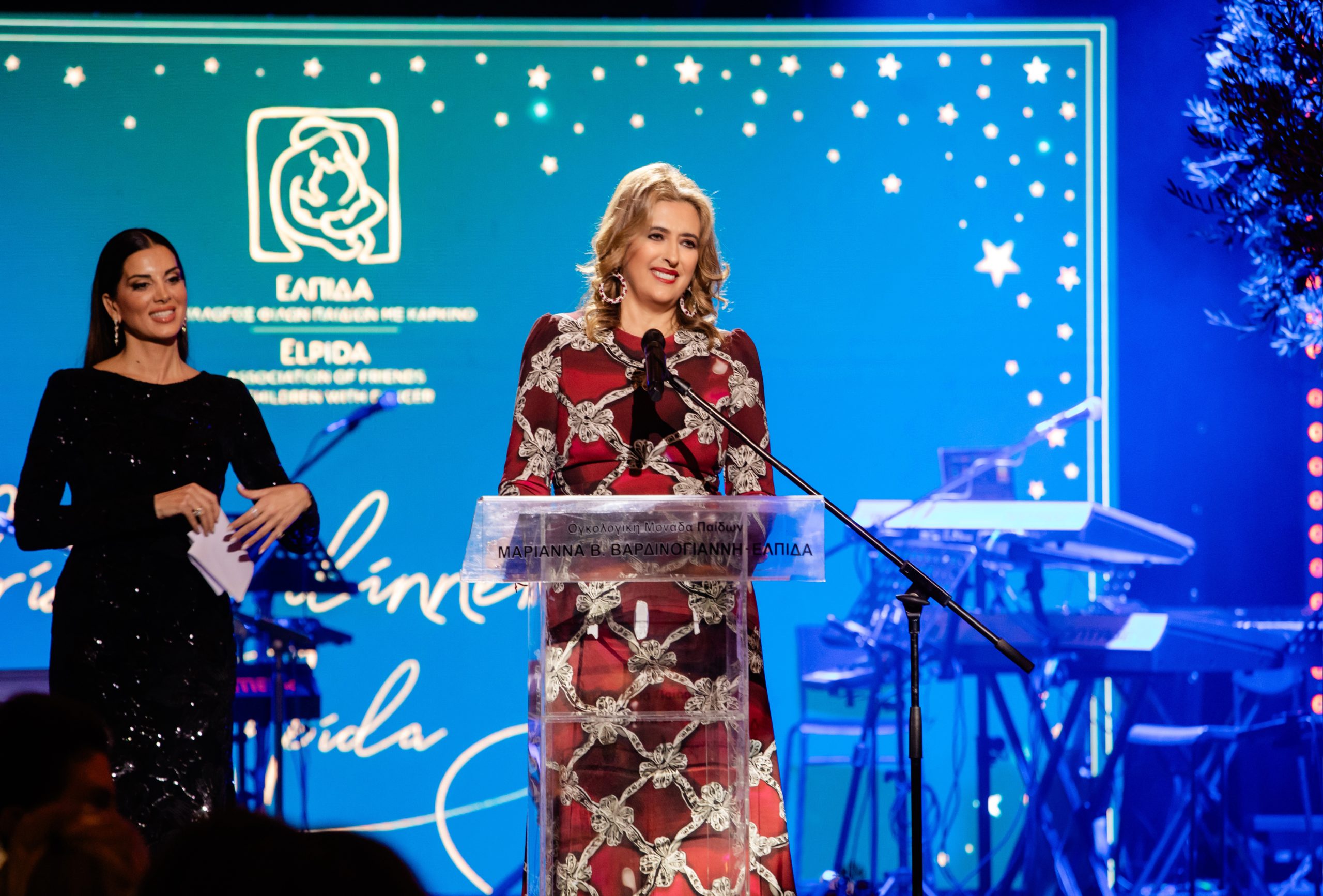 Η Πρόεδρος του Συλλόγου, κυρία Χριστιάννα Β. Βαρδινογιάννη, στην ομιλία της της ευχαρίστησε όλους για τη συμπαράστασή τους στον αγώνα κατά του παιδικού καρκίνου, τονίζοντας ότι η δύναμη της προσφοράς είναι πολύτιμο δώρο για τα παιδιά αυτές τις άγιες ημέρες των Χριστουγέννων: «Μέσα από την καρδιά μου θα ήθελα να σας ευχαριστήσω για την παρουσία σας και την ολόθερμη στήριξή σας στην ΕΛΠΙΔΑ. Η σημερινή εκδήλωση είναι κάτι πολύ παραπάνω από ένα δείπνο, είναι μια βραδιά αγάπης και αλληλεγγύης για τα παιδιά της ΕΛΠΙΔΑΣ. Σήμερα μας τιμάτε και γίνεστε μέρος του ιερού αγώνα μας για τα παιδιά με καρκίνο και τις οικογένειές τους».