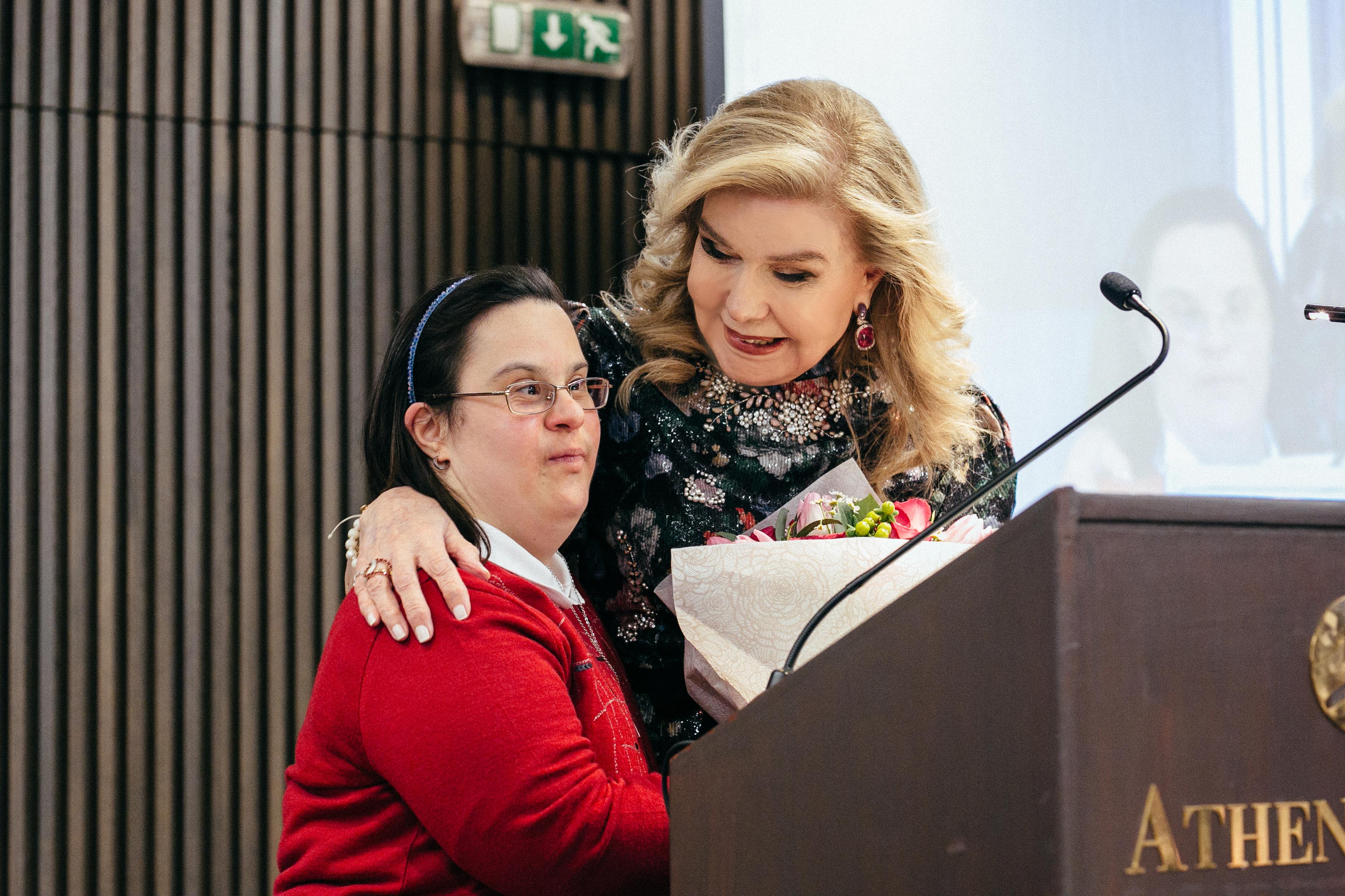 «Είμαι πραγματικά συγκινημένη που όλοι όσοι βρισκόμαστε εδώ γινόμαστε μια μεγάλη αλυσίδα αγάπης και δύναμης για τους αθλητές και τις αθλήτριές μας, που μας κάνουν να αισθανόμαστε υπερήφανοι κάθε φορά που συμμετέχουν σε διεθνείς και εθνικούς αγώνες. Υπερήφανοι για όλους αυτούς τους σπουδαίους πρωταθλητές της ζωής αλλά και για τις οικογένειές τους και τους προπονητές τους» τόνισε η Πρόεδρος της Τιμητικής Επιτροπής των SpecialOlympicsHellas και Πρέσβης Καλής Θελήσεως της UNESCO κυρία Μαριάννα Β. Βαρδινογιάννη.